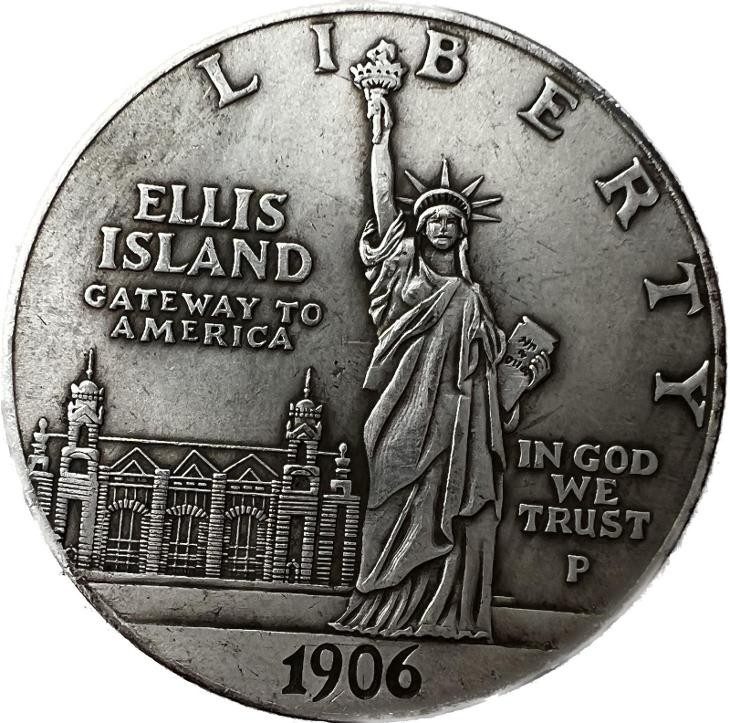 Experimenta un pedazo de la historia estadounidense con la replica de moneda de fantasía de Ellis Island 1906, un artículo impresionante para coleccionistas y entusiastas de la historia por igual. Esta moneda replica meticulosamente elaborada captura la esencia de la moneda original de 1906, lo que refleja una epoca significativa en el viaje de Estados Unidos. En el anverso, la iconica Estatua de la Libertad esta elegantemente representada, simbolizando la libertad y la esperanza para los millones de inmigrantes que llegaron a Ellis Island en busca de una vida mejor. La moneda esta chapada con un acabado de plata antigua, lo que le da un aspecto autentico que recuerda a las monedas de principios del siglo XX. El dolar Ellis es mas que una replica; es una muestra de la epoca en que Estados Unidos dio la bienvenida a aquellos que buscaban oportunidades y libertad. Hecho de cobre de alta calidad y recubierto con plata antigua, proporciona un peso sustancial que mejora su autenticidad. La superficie lisa, el brillo brillante y los detalles intrincados hacen de esta moneda una pieza destacada que merece un lugar en cualquier coleccion, o como un sofisticado acento decorativo en tu hogar u oficina.Añade la replica de moneda de fantasía de Ellis Island 1906 a tu coleccion hoy y celebra un momento crucial en la historia de Estados Unidos con esta pieza elegante y atemporal.