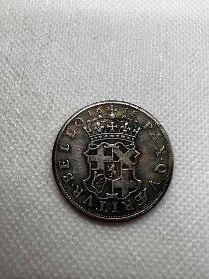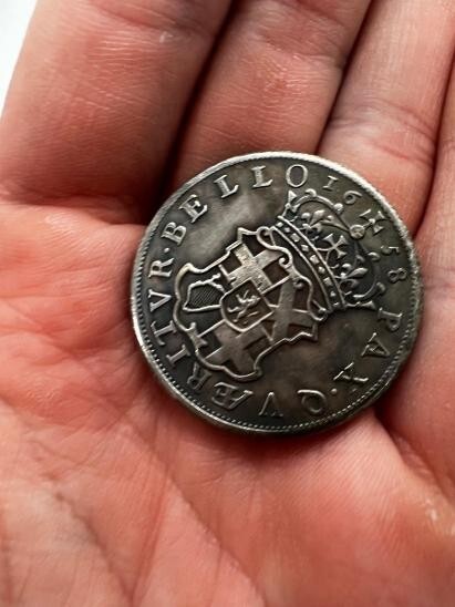 Golpeada durante el reinado de Oliver Cromwell, una figura fundamental y controvertida en la Inglaterra del siglo XVII, esta medalla simboliza un período transformador marcado por la guerra civil, la agitacion política y el cambio religioso radical. El legado de Cromwell como líder militar y político sigue siendo un tema de amplio debate, lo que refleja las complejidades de su gobierno e influye en el curso de la historia britanica.