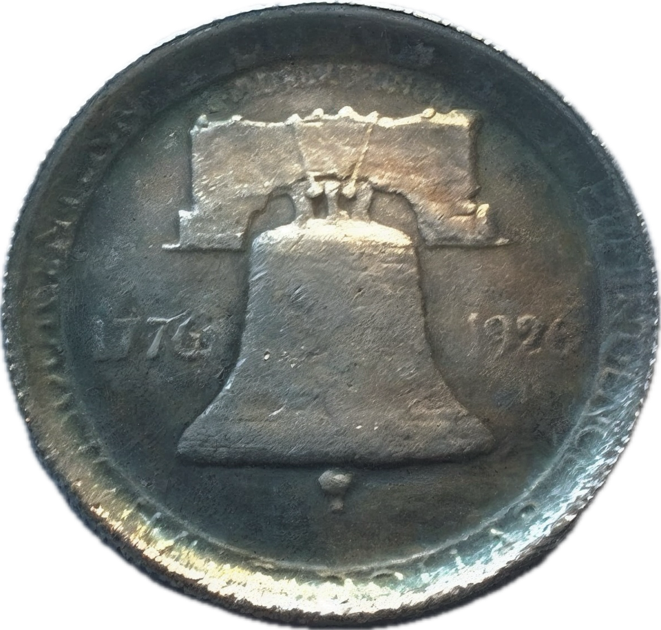 Esta moneda conmemorativa de intrincadamente diseñada honra el 150 aniversario de la firma de la Declaracion de Independencia y se emitio originalmente para la Exposicion del Sesquicentenario de 1926 celebrada en Filadelfia. El anverso presenta bustos conjuntos de George Washington y Calvin Coolidge, por lo que es la única moneda de Estados Unidos que retrata a un presidente en funciones durante su mandato, una notable excepcion a una larga tradicion numismatica. La composicion de las imagenes representa tanto el nacimiento revolucionario de los Estados Unidos como el liderazgo contemporaneo que mantiene su legado. En el reverso, una representacion prominente de la Campana de la Libertad, completa con su grieta característica, esta flanqueada por las fechas 1776 y 1926, uniendo un siglo y medio de progreso estadounidense. El lema latino E Pluribus Unum, "De muchos, uno", refuerza el mensaje de unidad de la moneda. Esta pieza es una reedicion moderna (restrike) del original, elaborada con fidelidad al diseño historico, y es ideal para coleccionistas que aprecian el arte y el simbolismo detras de la numismatica conmemorativa de Estados Unidos?.