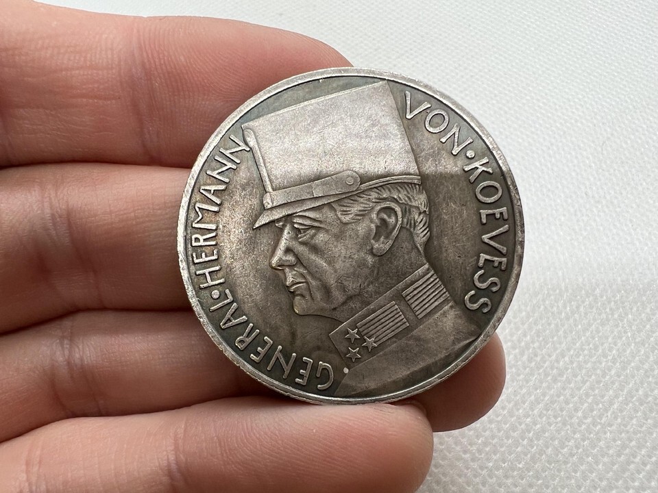 Presentation de la « tempete de Lov?en : medaille historique mettant en vedette le general von Kovess ». Cette medaille commemorative frappante honore le general Hermann Kovess von Kovesshaza, un dirigeant eminent de l'armee austro-hongroise pendant la Premiere Guerre mondiale. L'avers de la medaille presente un profil detaille du general von Kovess, avec son nom complet et son couvre-chef militaire distinctif, resumant son statut et sa signification dans l'histoire militaire.
