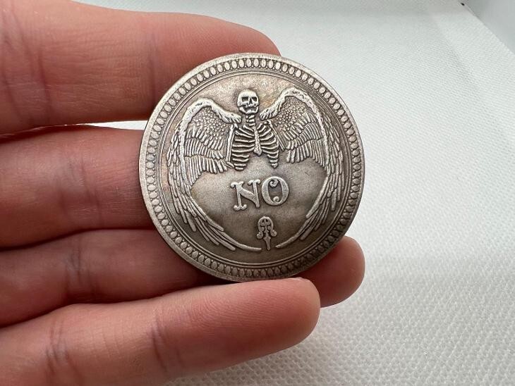 Presentamos el Mystical "SÍ/NO" Fantasy Coin Medallion, un cautivador artículo de coleccionista que combina intrincadamente arte y simbolismo. Esta notable replica de una moneda historica esta diseñada para intrigar no solo a los entusiastas de la numismatica sino tambien a cualquier persona con un aprecio por los artefactos únicos. En un lado del medallon, encontraras una sorprendente representacion de un esqueleto con alas, acompañado de la palabra "NO". Estas imagenes pueden evocar diversas interpretaciones, desde significados místicos y ocultos hasta significados mas contemporaneos, que representan el rechazo o una respuesta negativa. Los meticulosos detalles grabados en la moneda mejoran su autenticidad, ofreciendo una sensacion historica genuina. Por el contrario, el reverso presenta el sol y la luna sobre las manos agarrando un ojo, complementado con la palabra "SÍ". Este poderoso visual significa acuerdo o afirmacion, creando una dualidad contrastante cuando se combina con el lado opuesto de la moneda. Juntas, estas dos imagenes sirven como un símbolo profundo de la toma de decisiones, la eleccion y el delicado equilibrio entre lo positivo y lo negativo. El medallon místico de monedas de fantasía "SÍ/NO" no es solo una adicion fascinante a cualquier coleccion; tambien es una herramienta que invita a la reflexion e interpretacion del simbolismo en contextos historicos y modernos. Ya sea que seas un avido coleccionista o simplemente estes buscando un iniciador de conversacion único, este medallon seguramente causara una impresion duradera.