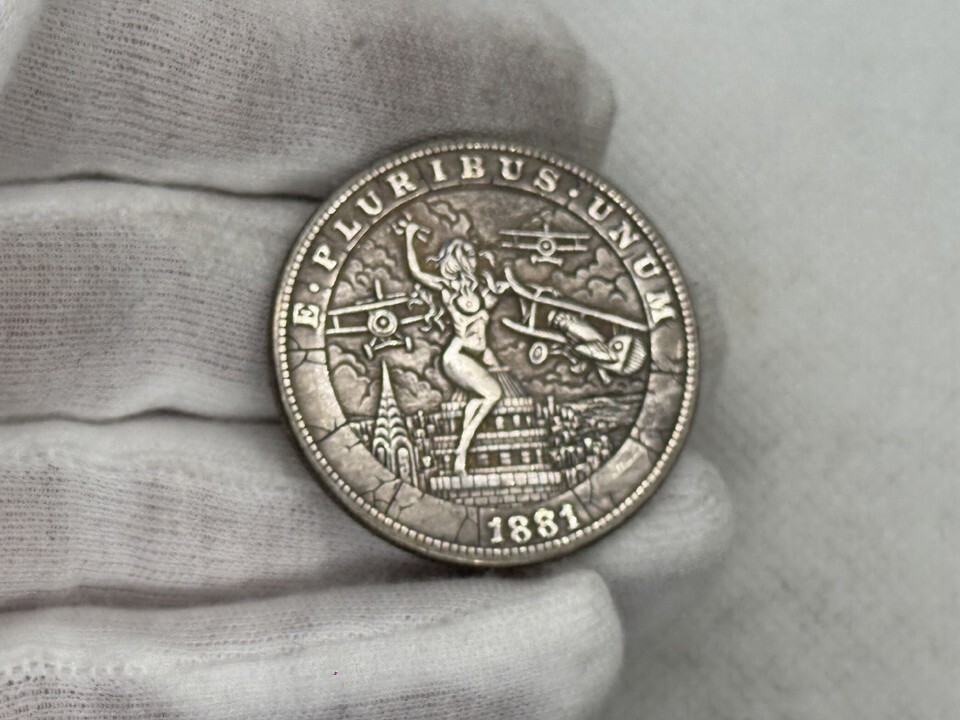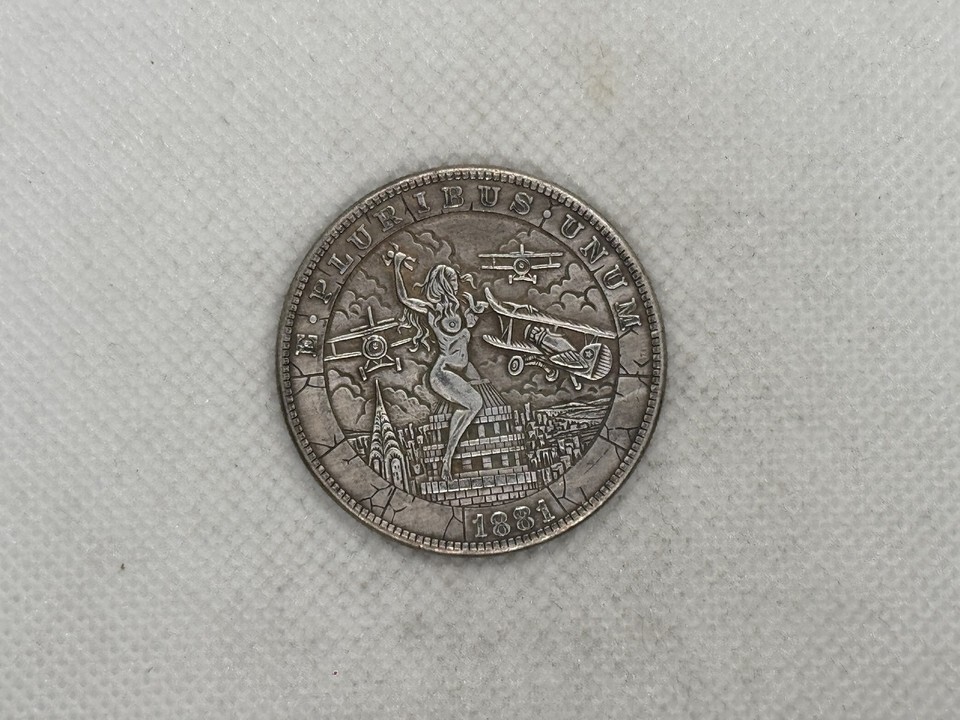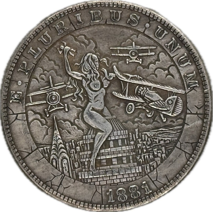 Esta medalla de fantasía King Kong de edicion limitada es una pieza coleccionable única que combina a la perfeccion el patrimonio numismatico historico con la creatividad artística contemporanea. El anverso presenta una escena dramatica inspirada en el legendario King Kong, que muestra una figura femenina mítica enfrentandose a aviones en medio del iconico horizonte de Nueva York, incluido el famoso edificio Chrysler. Estas impresionantes imagenes simbolizan la eterna lucha entre la naturaleza y la civilizacion humana, impregnando la medalla de un profundo significado. Alrededor del diseño se encuentra la inscripcion latina "E PLURIBUS UNUM" junto con el año 1881, una reinterpretacion moderna de un diseño clasico.