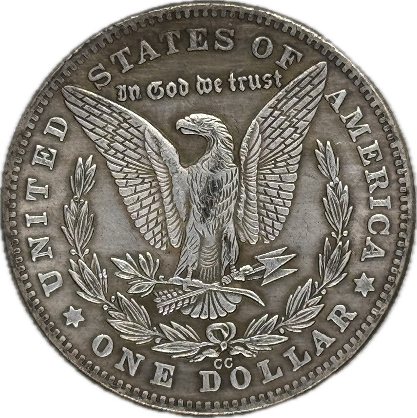 El reverso se adhiere al motivo tradicional del dolar americano, mostrando prominentemente un aguila majestuosa con sus alas extendidas, rodeada por una corona de laurel e inscripciones habituales. El diseño general ejemplifica la artesanía meticulosa, fusionando temas de la cultura pop con el arte numismatico, haciendo de esta medalla uno de los ejemplos mas distinguidos del arte numismatico moderno. Hecho a mano de metal de alta calidad con un acabado patinado, acentúa una estetica historica, otorgando un caracter exclusivo a la pieza. Este es un artículo ideal para coleccionistas que aprecian no solo el valor tradicional de las monedas, sino tambien la reinterpretacion creativa de motivos iconicos.