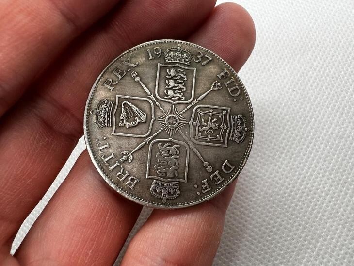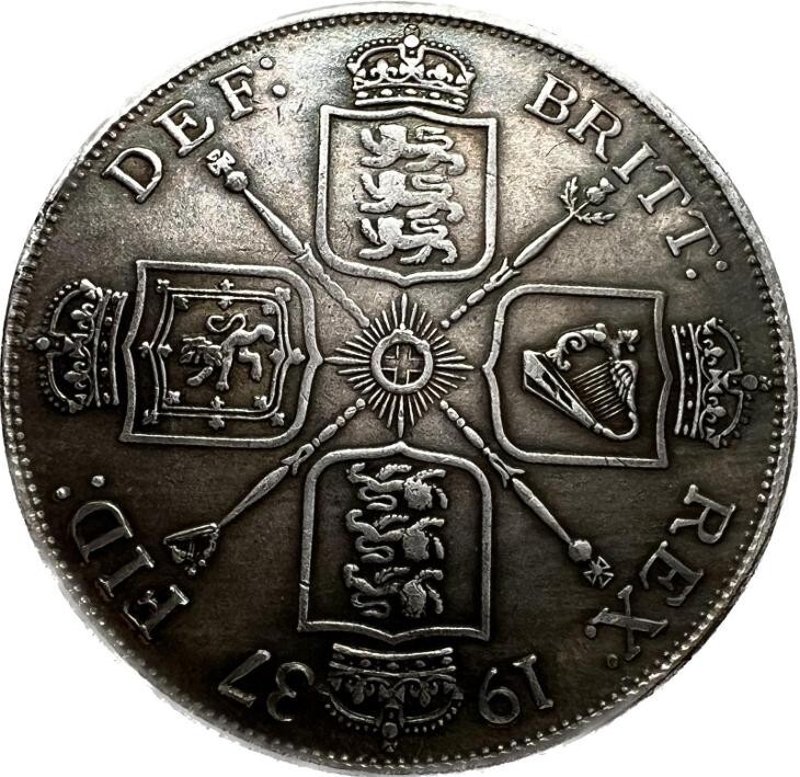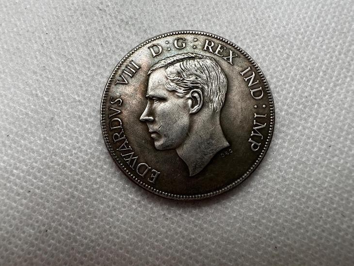 La Medalla de Fantasía Conmemorativa Eduardo VIII de 1937 es un artículo de coleccionista raro y valioso que captura una breve pero significativa era de la monarquía britanica, ya que Eduardo VIII reino solo un año antes de su abdicacion. El anverso de la medalla presenta un retrato finamente detallado del rey Eduardo VIII, adornado con la inscripcion latina "EDWARDVS VIII D.G. REX IND. IMP.", que se traduce como "Edward VIII, por la Gracia de Dios, Rey y Emperador de la India." Esta exquisita representacion muestra al joven rey en todo su esplendor real. En el reverso, la medalla esta intrincadamente diseñada con el escudo de armas del reino britanico, incorporando símbolos de Inglaterra, Escocia e Irlanda. La inscripcion "DEF. Britt. REX. FID. DEF. 1937" sirve como abreviatura de "Defensor de la Fe, Rey de Gran Bretaña", enfatizando aún mas el título real del rey Eduardo VIII. Este llamativo reciente ha sido meticulosamente elaborado para replicar fielmente la medalla original, por lo que es una adicion ideal para coleccionistas dedicados a la historia real britanica y la numismatica.