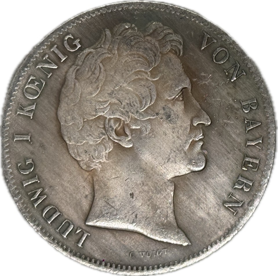 Esta medalla conmemorativa de fantasía rinde homenaje al rey bavaro Luis I y al monumento Constitutionssaule, que fue erigido en 1828 para celebrar los derechos constitucionales bavaros. El anverso de la medalla presenta un perfil finamente detallado del rey Luis I, acompañado por la inscripcion ?LUDWIG I KOENIG VON BAYERN? y la firma del grabador. El rey Luis I fue una figura fundamental en el siglo XIX, conocido por su firme apoyo a las artes, la arquitectura y la identidad alemana, como lo demuestran sus extensos proyectos de construccion.