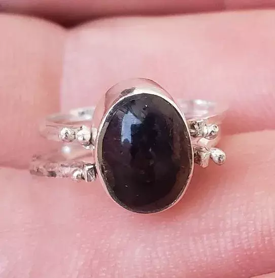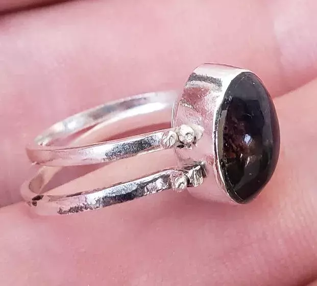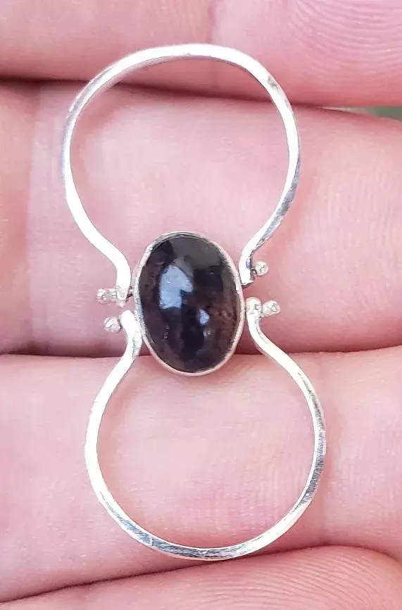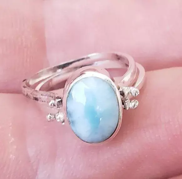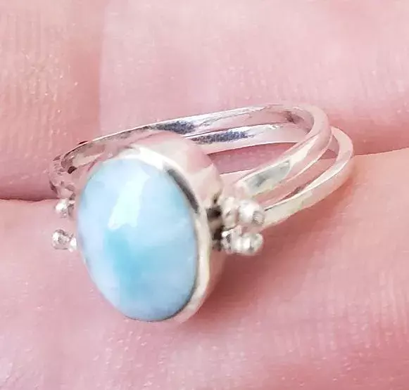 THIS REVERSIBLE RING IS HANDMADE WITH NATURAL LARIMAR - AMBER gemstones and 925 sterling silver.