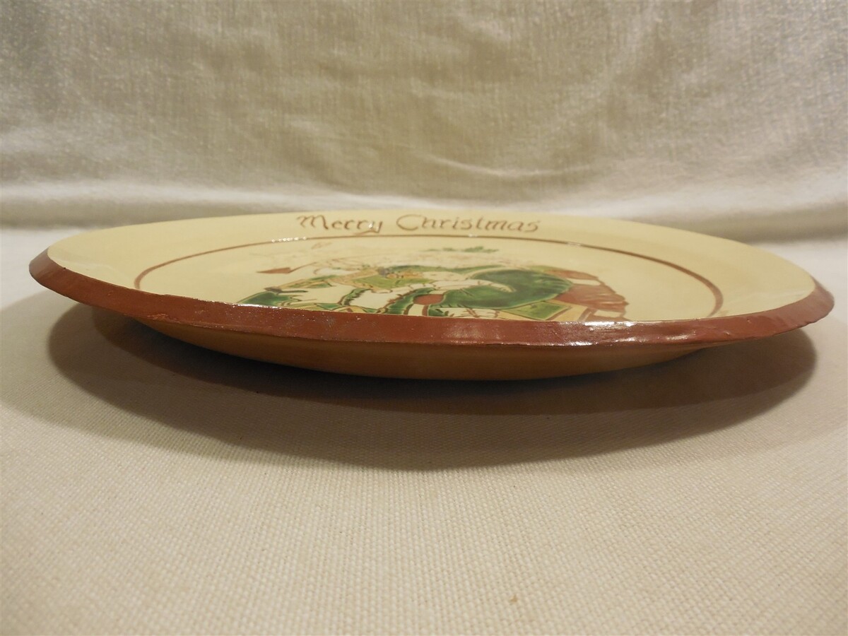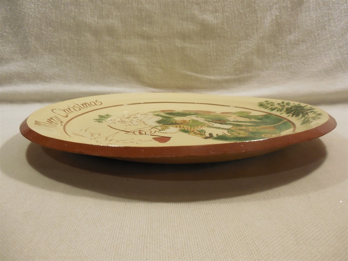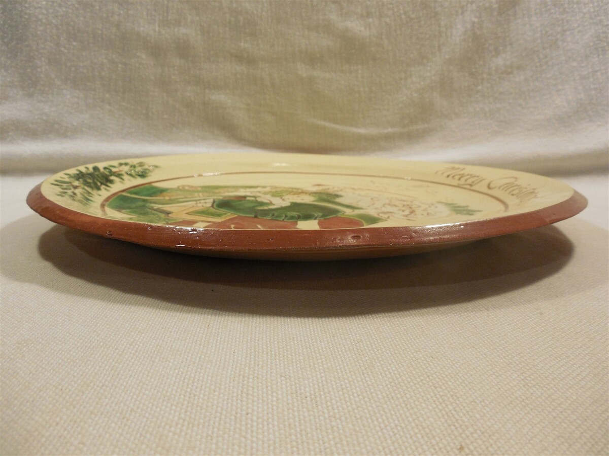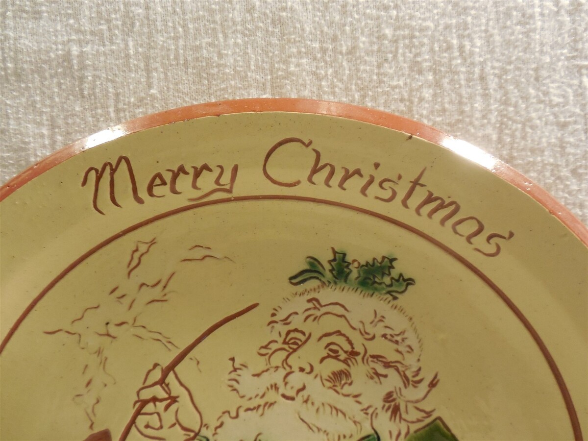 This is a vintage 1986 Long Family Potters (Phoenixville, PA) Redware Christmas Santa Claus Charger plate. The plate is super colorful with a large Santa Claus in the center - Merry Christmas along the top edge - 1986 along the bottom edge. The back of the plate is marked The Long Family Potters Phoenixville, PA 1986 Adapted from a lithograph by Thomas Nast by Elizabeth Norris. The plate measures approximately 1" tall and 12" in diameter. Nice clean cute Long Family Potters redware Christmas Santa Claus charger plate that displays absolutely great when sitting on a shelf or table!