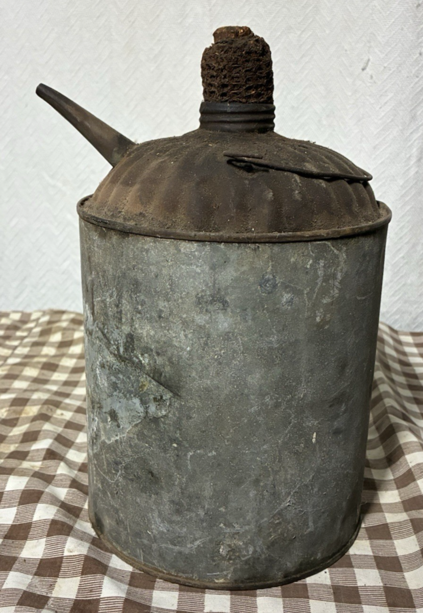 Vintage Galvanized Metal Gas Kerosene Can Metal Handle with Corn Cob Cork