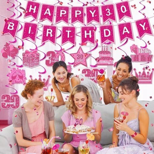 Happy Birthday Banner - Birthday Decorations for Women Girls Pink Hot Pink 30TH