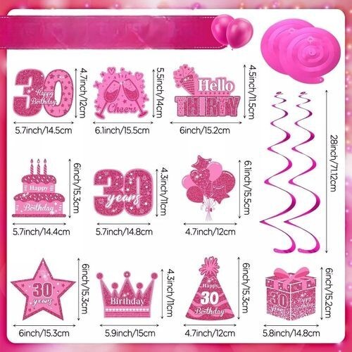 ?Package includes?The pink birthday decorations for women set includes 1 piece of hot pink happy birthday banner, 10 pieces of pink happy birthday hanging swirls, adding more fun to you or your family?s birthday party