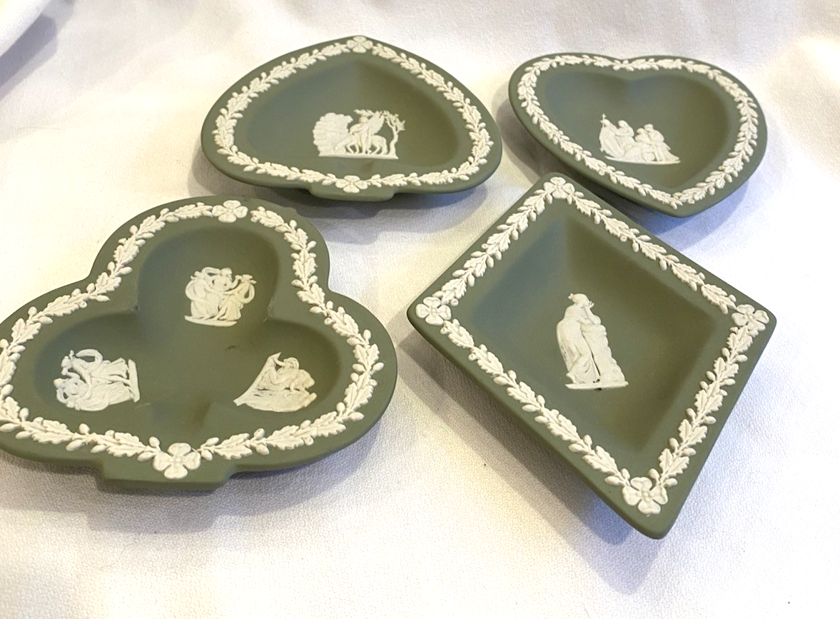 Wedgewood Jasperware Green Bridge Set Club, Spade, Diamond, Heart Dish