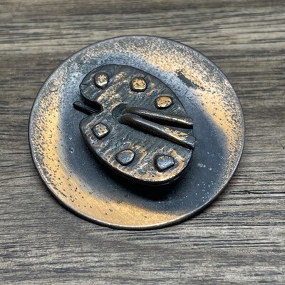 Vintage Metal Artists Paint Pallette Brooch Pin Estate Jewelry Find KG