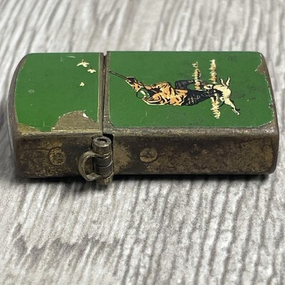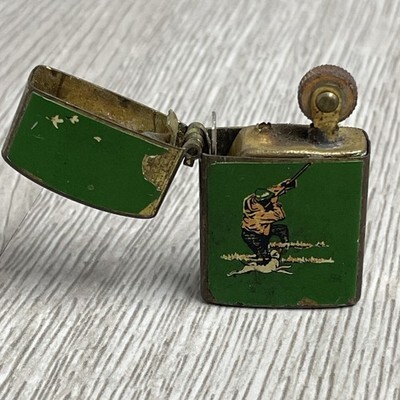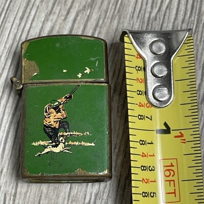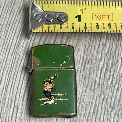 Vintage Miniature Flip Top Lighter Japan Brass Lighter Duck Hunting Scene MH JD