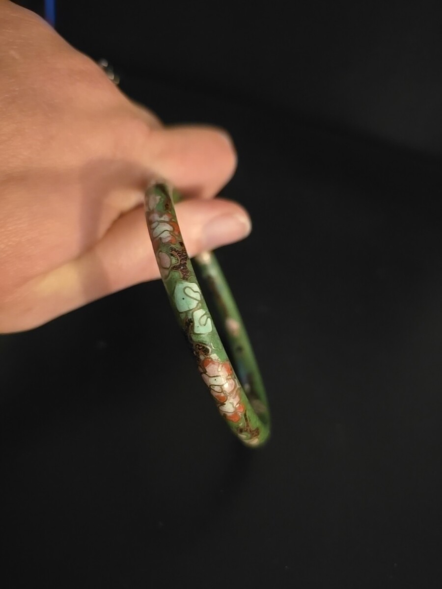 Medium Vtg Natural Stone Inlay Cloisonné Slip On Bangle Bracelet 3" across