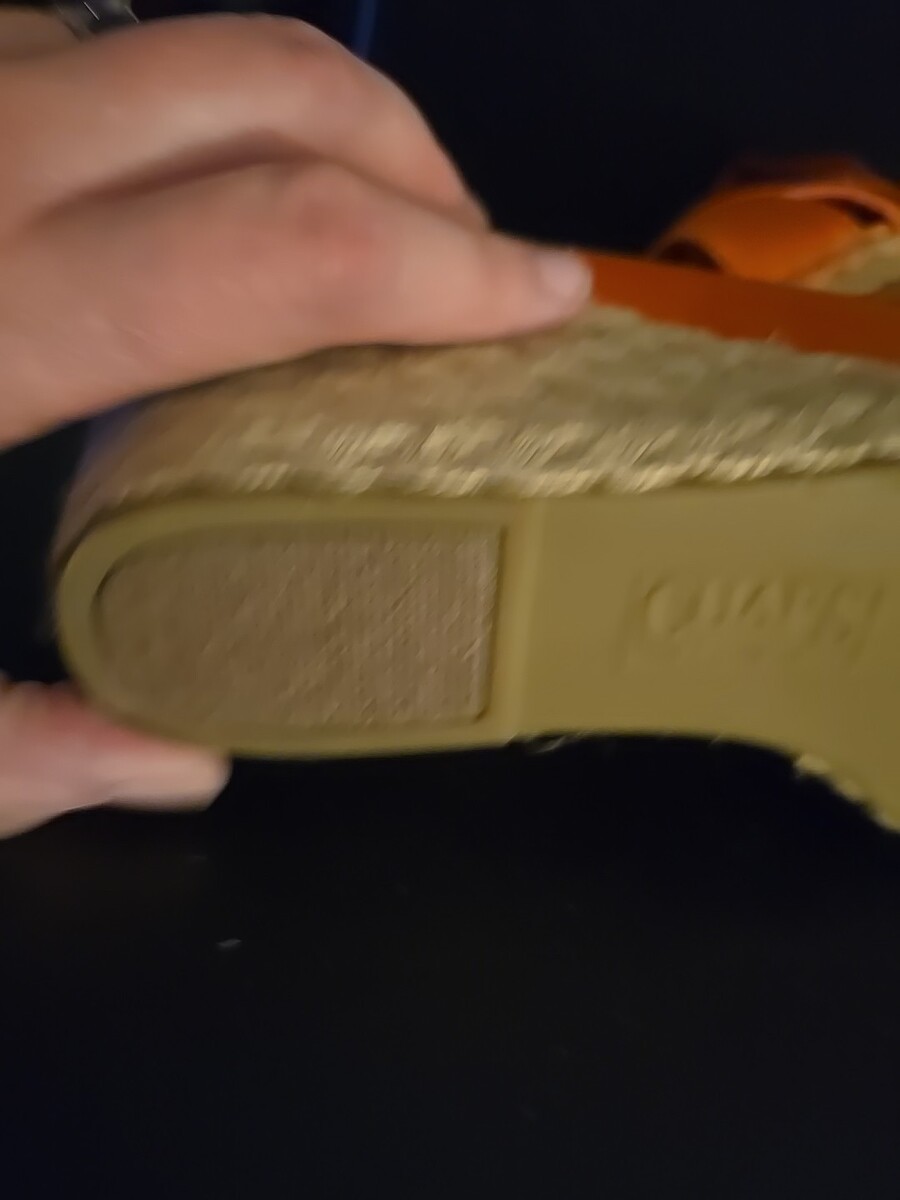 New Chaps Womens 8 B Dakota Orange Shiny Satin Open Toe Wedge Heel Pink Inside