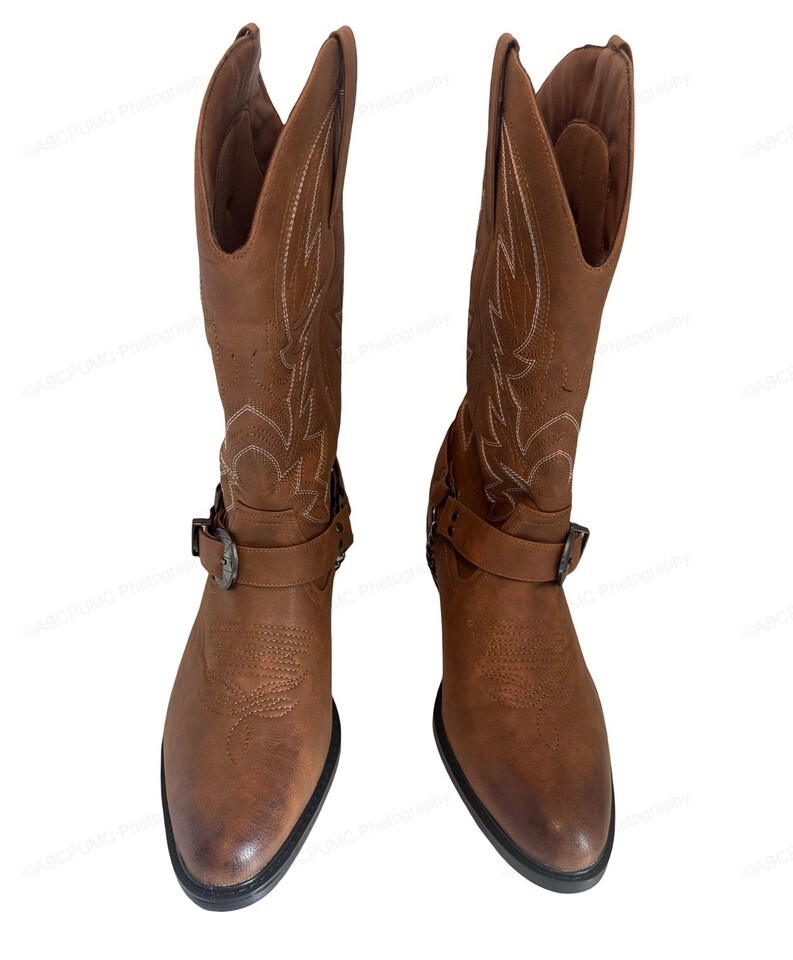 New with Box Men?s Cowboy Boots Western Mid Calf Buckle Shoes Steel Ring Chain Harness Strap Fashion Classic, Black, Brown, Size: 6.5 - 13