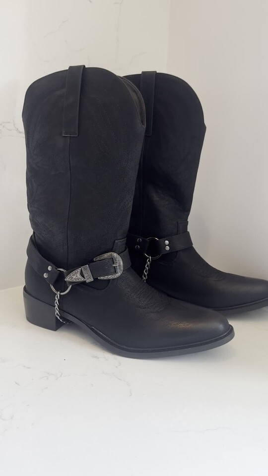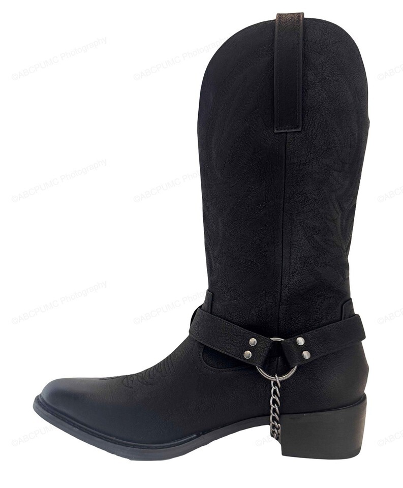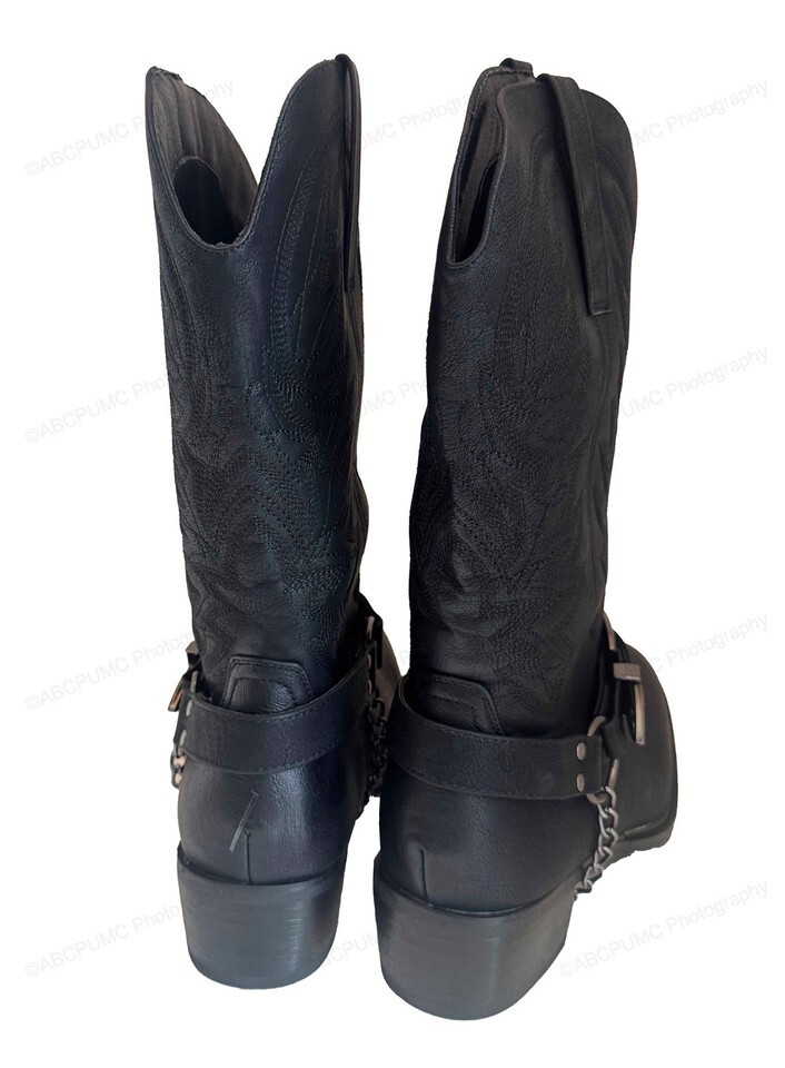Brand New Men's Cowboy Boots Mid Calf Western Chain Buckle Harness Dress Shoes