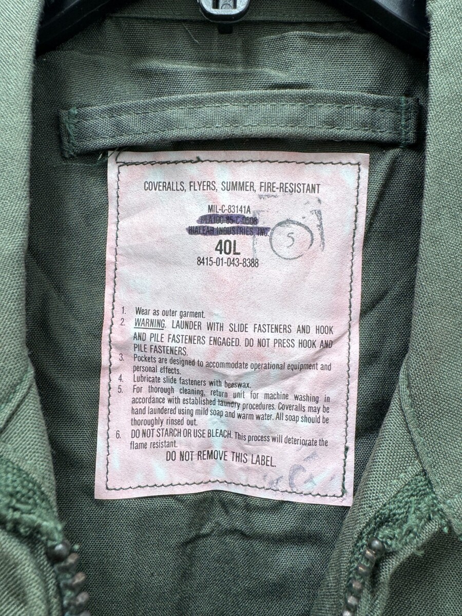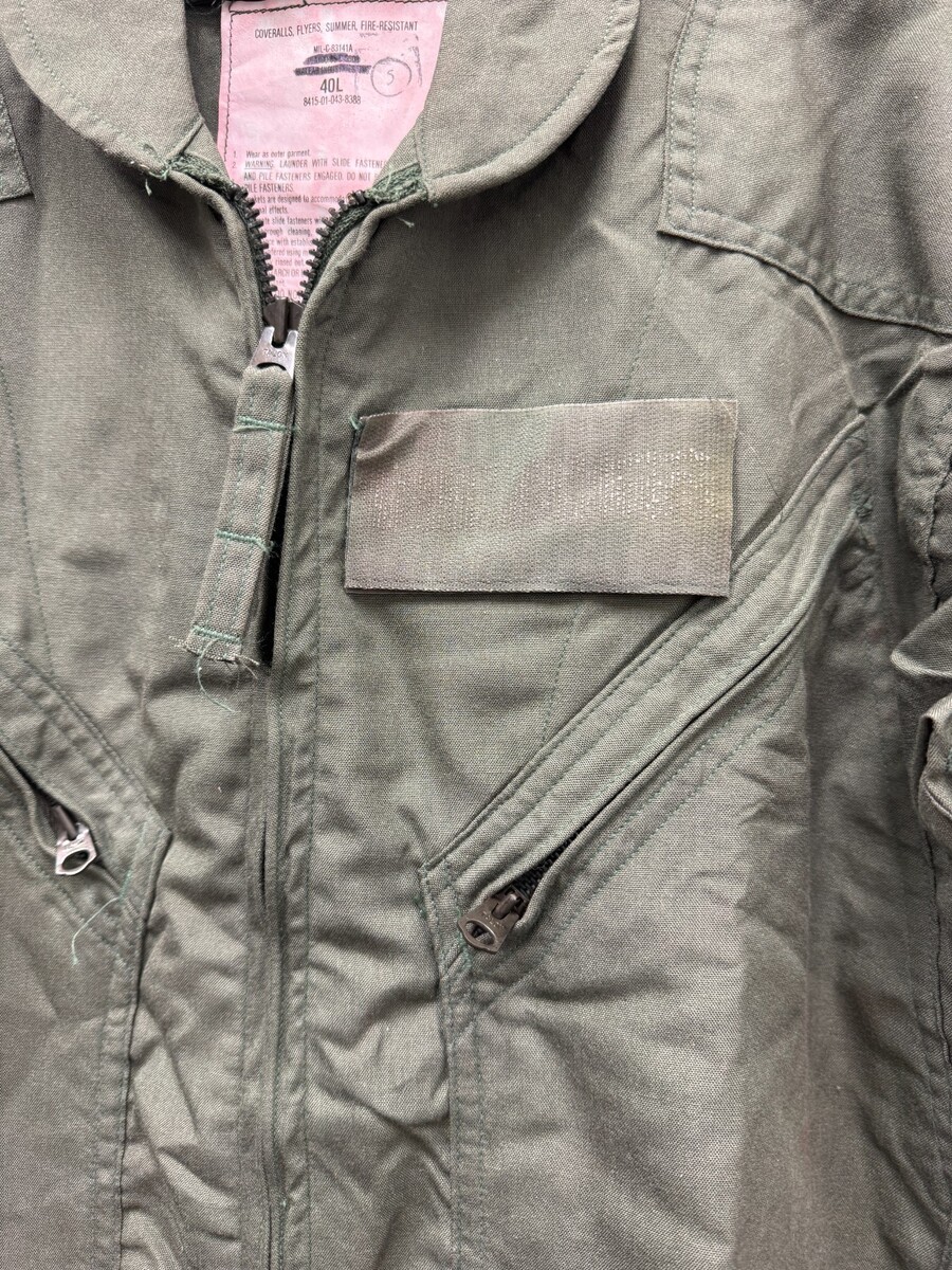 GENUINE US AIR FORCE ISSUE - 1985 SAGE GREEN NOMEX COVERALL FLYERS MEN'S SUMMER FIRE RESISTANT SUIT CWU-27/P.