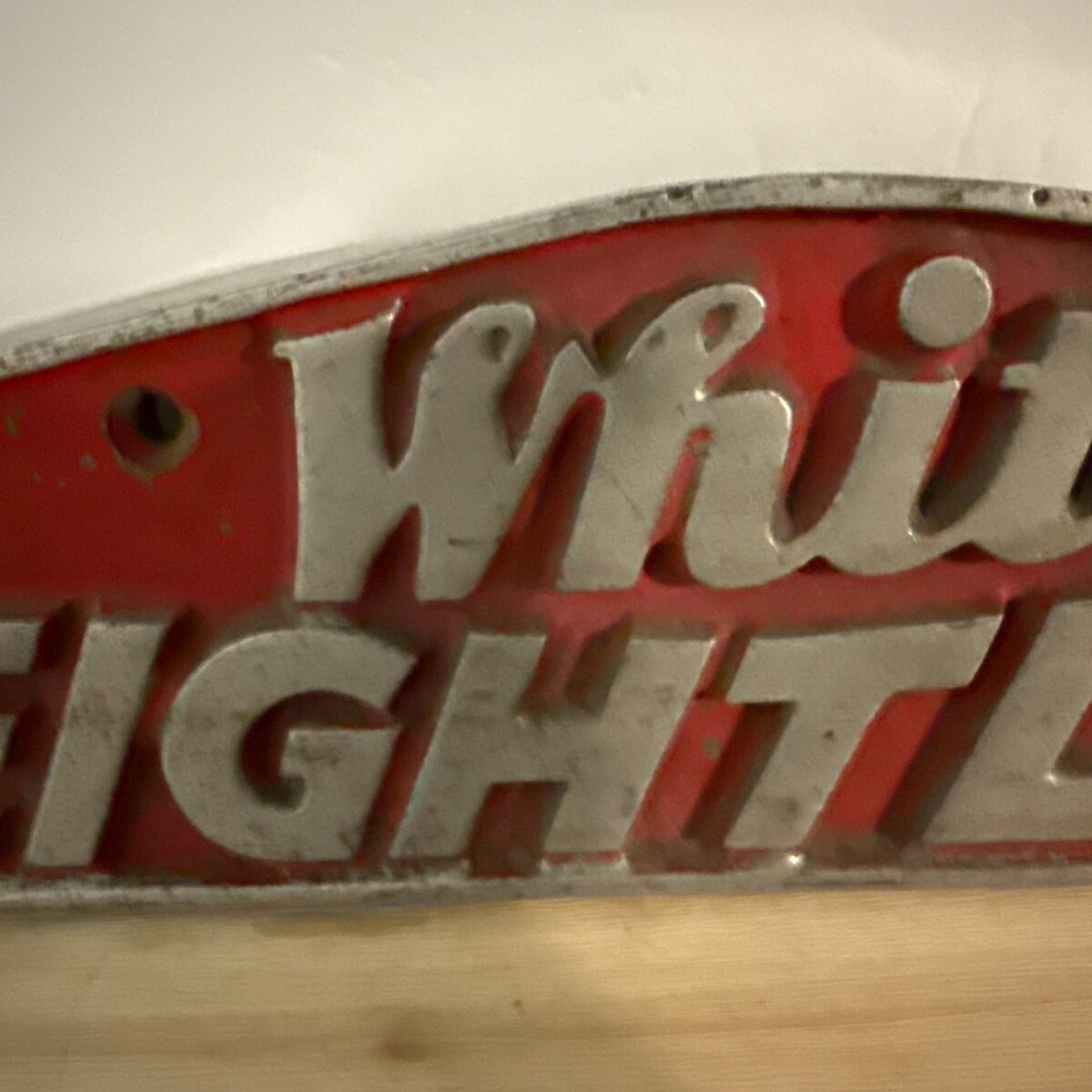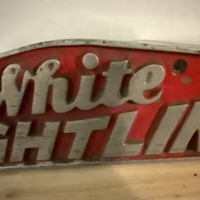 White Freightliner Powerliner Hood Emblem Badge Red Chrome Original COE 1970?s