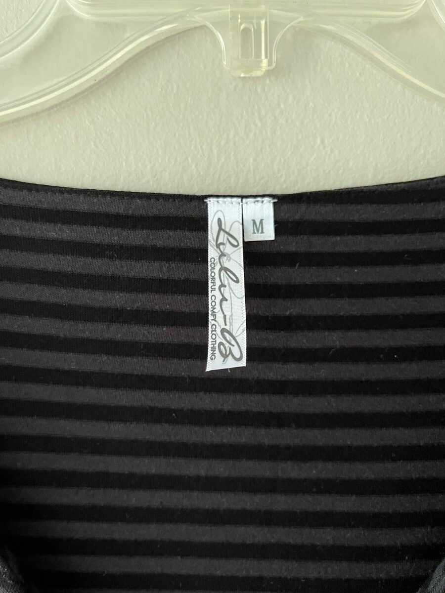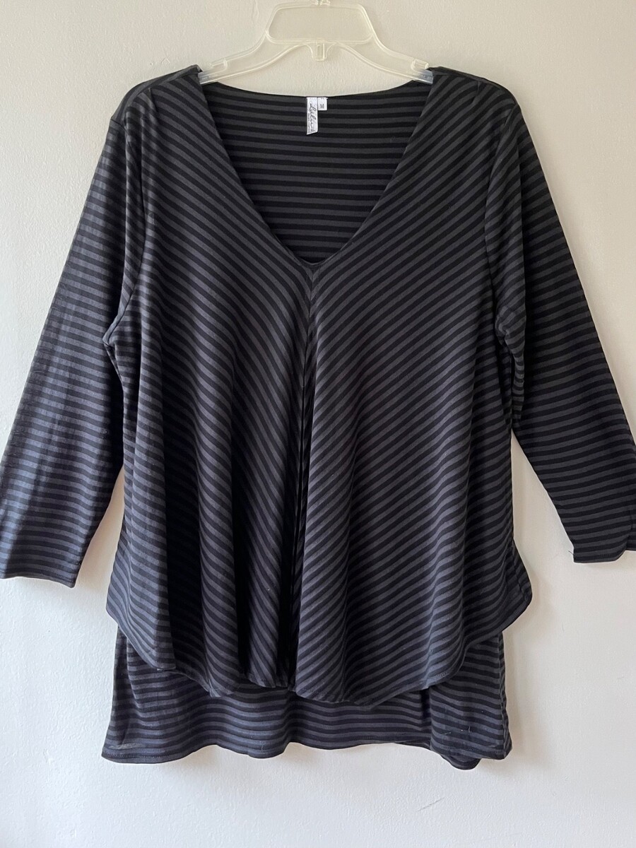 Lulu B Sz M Black Striped Layered Pullover Blouse Stretch Top Tencel Shirt