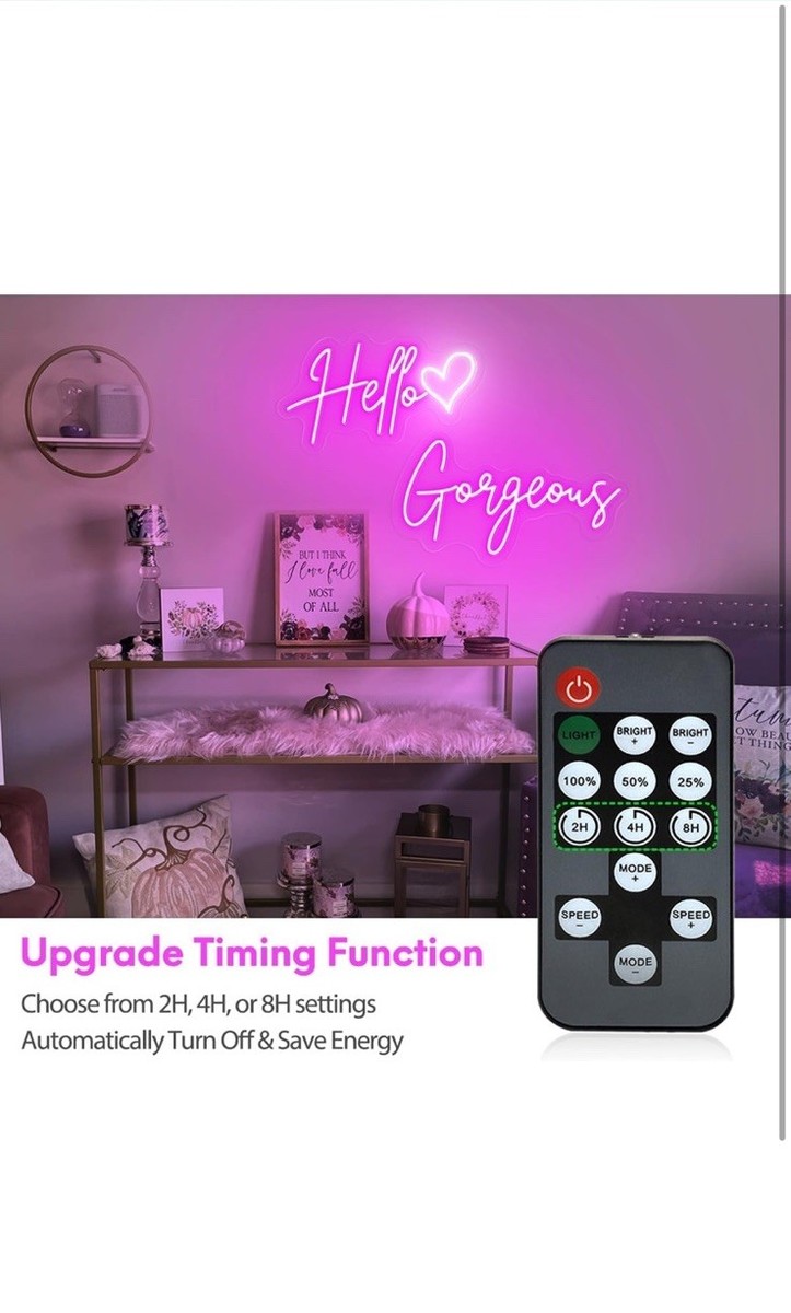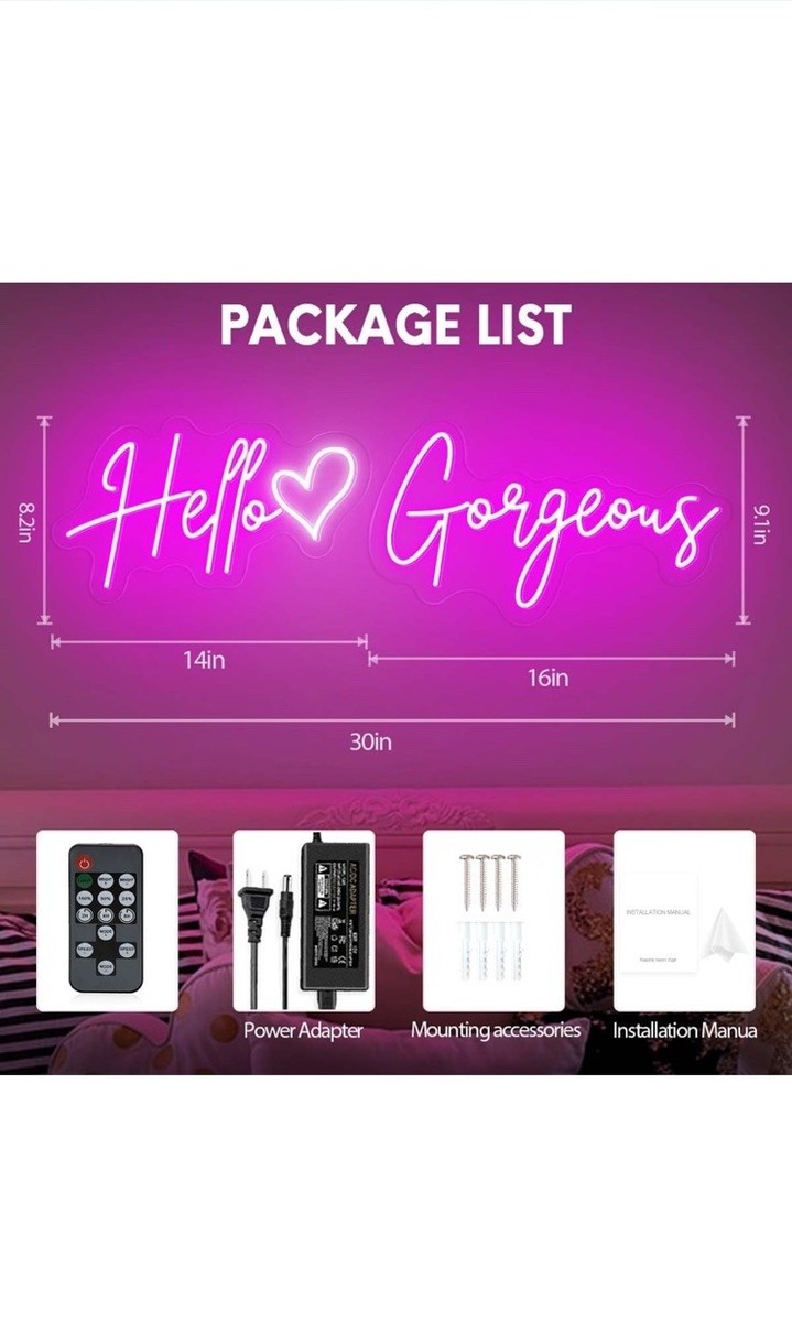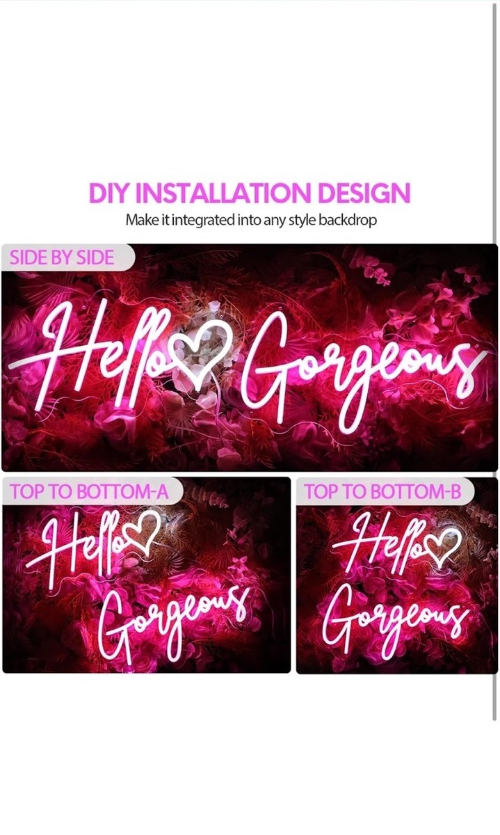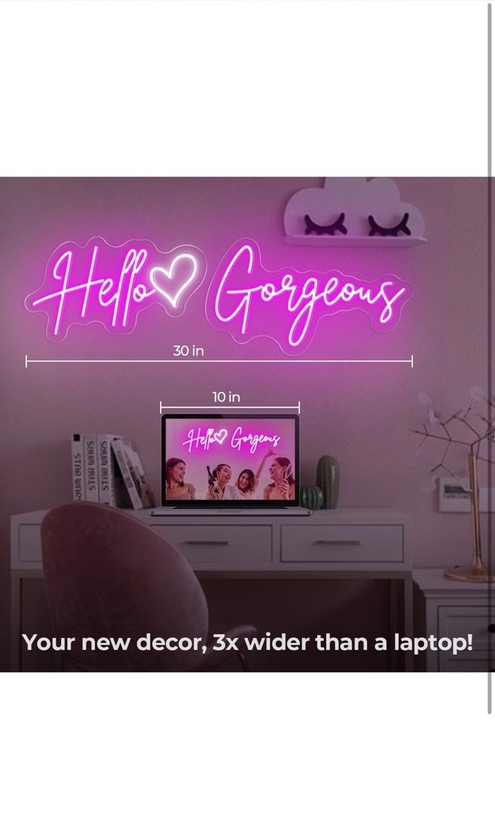 HELLO GORGEOUS Acrylic Neon Sign Light 30”x9” With Remote Control