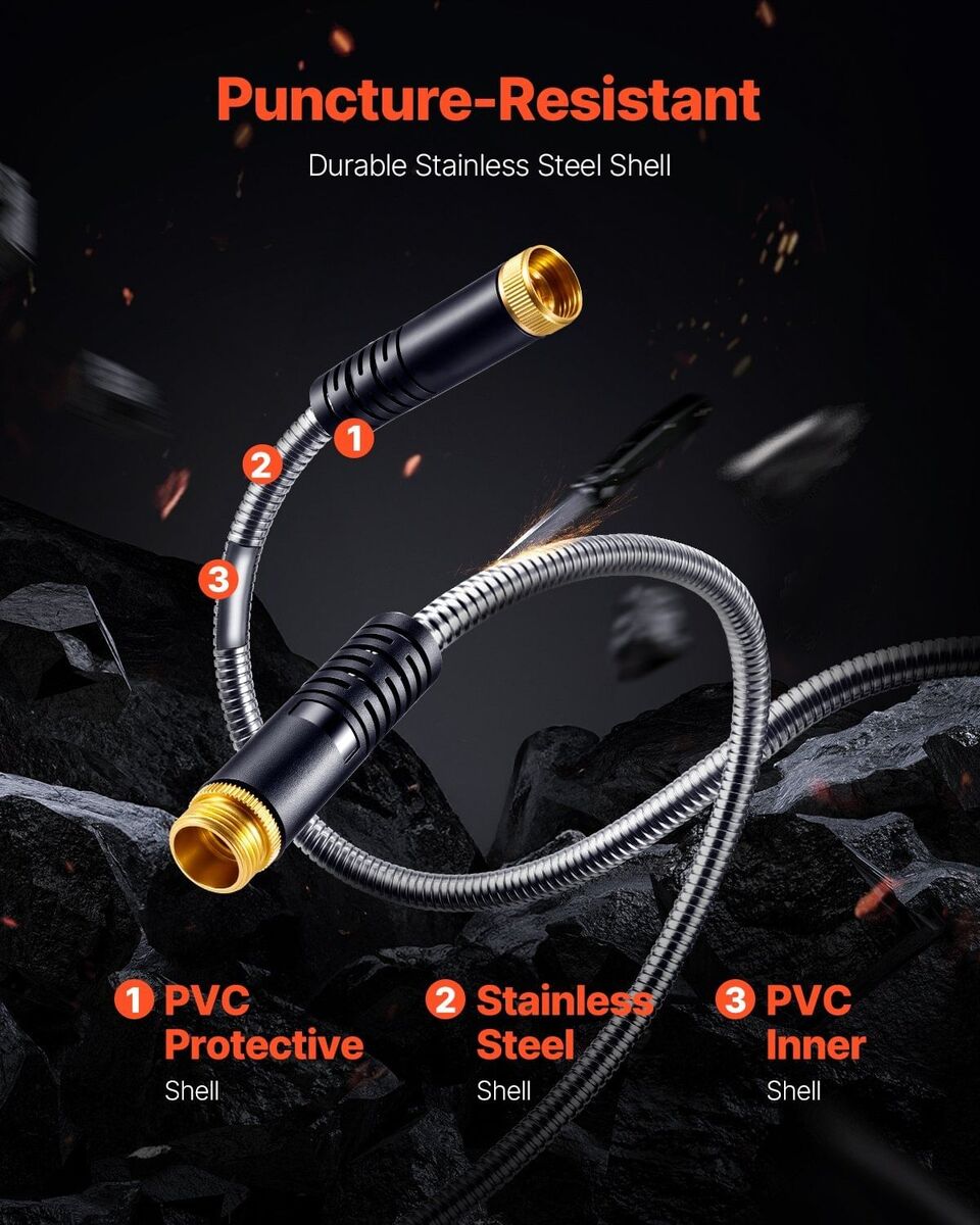 Metal Garden Hose 100 ft, Rust Proof Stainless Steel Water Hose, Heavy Duty Back
