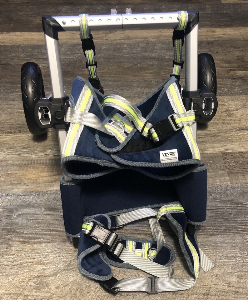 The image displays a VEVOR dog wheelchair designed for pets with disabled hind legs.