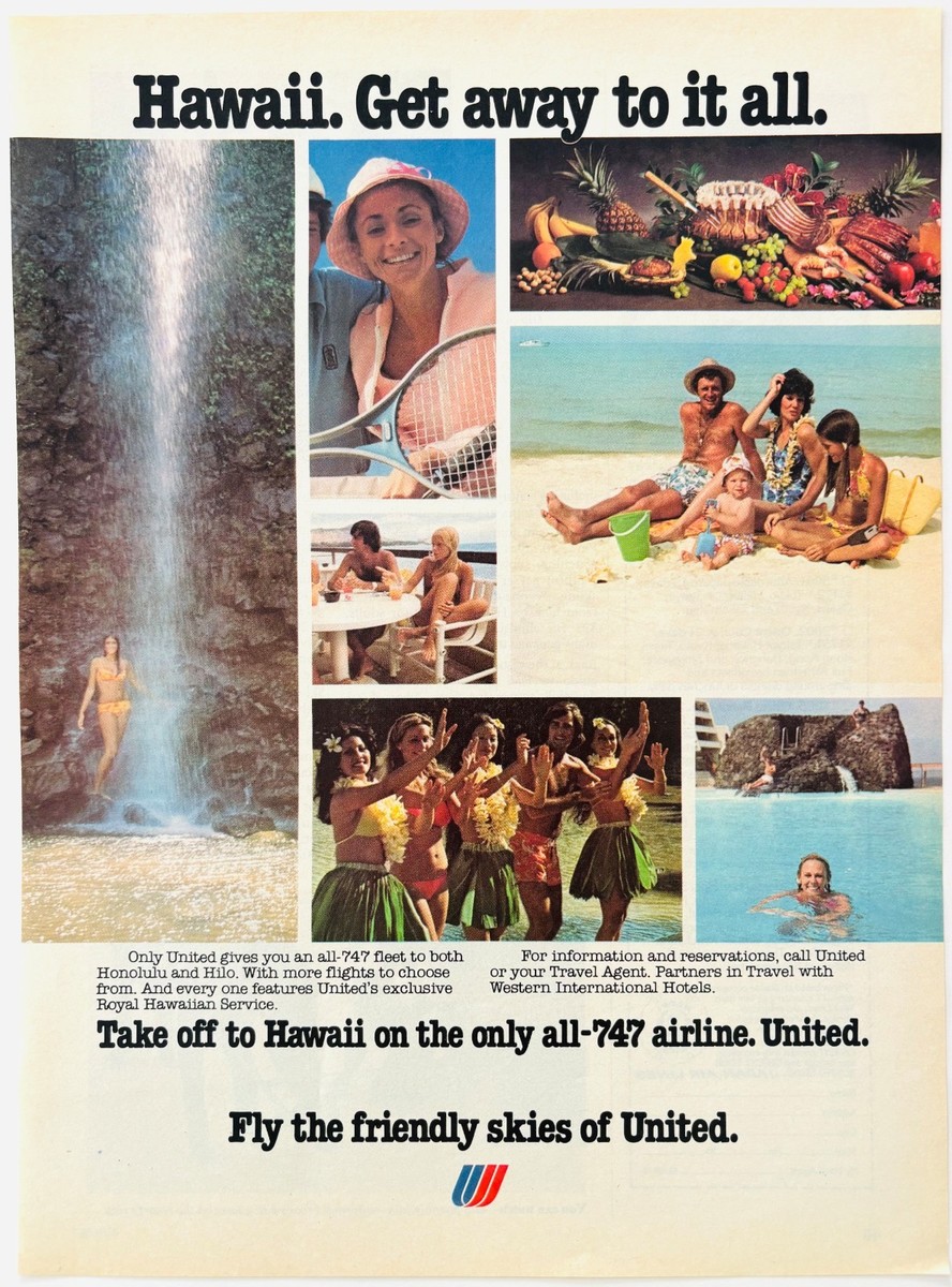 1978 United Airlines Advertisement Vintage Aviation Hawaii 747 Travel DWW12E