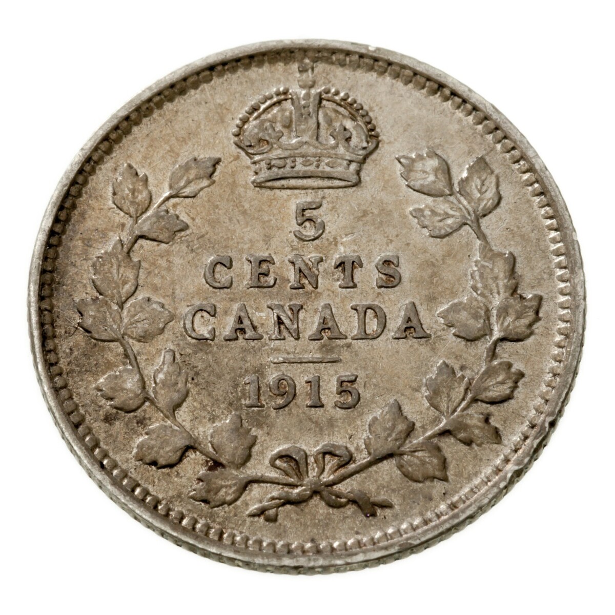 Moneda De Plata De 5 Centavos De Canadá De 1915 En Extra Fine, KM 22
