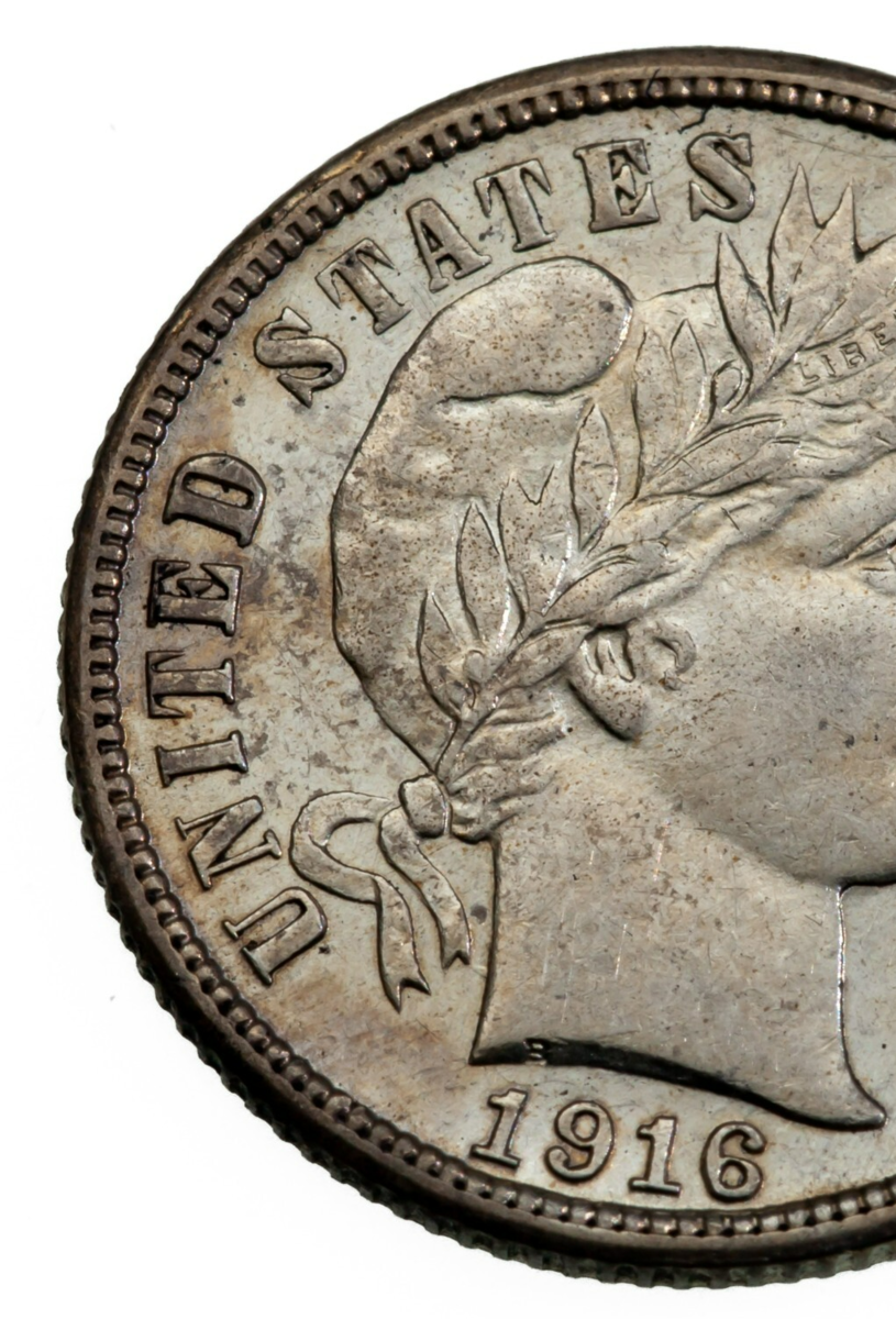 1916-S 10C Barber Dime en aproximadamente condicion AU sin circular con brillo perfecto