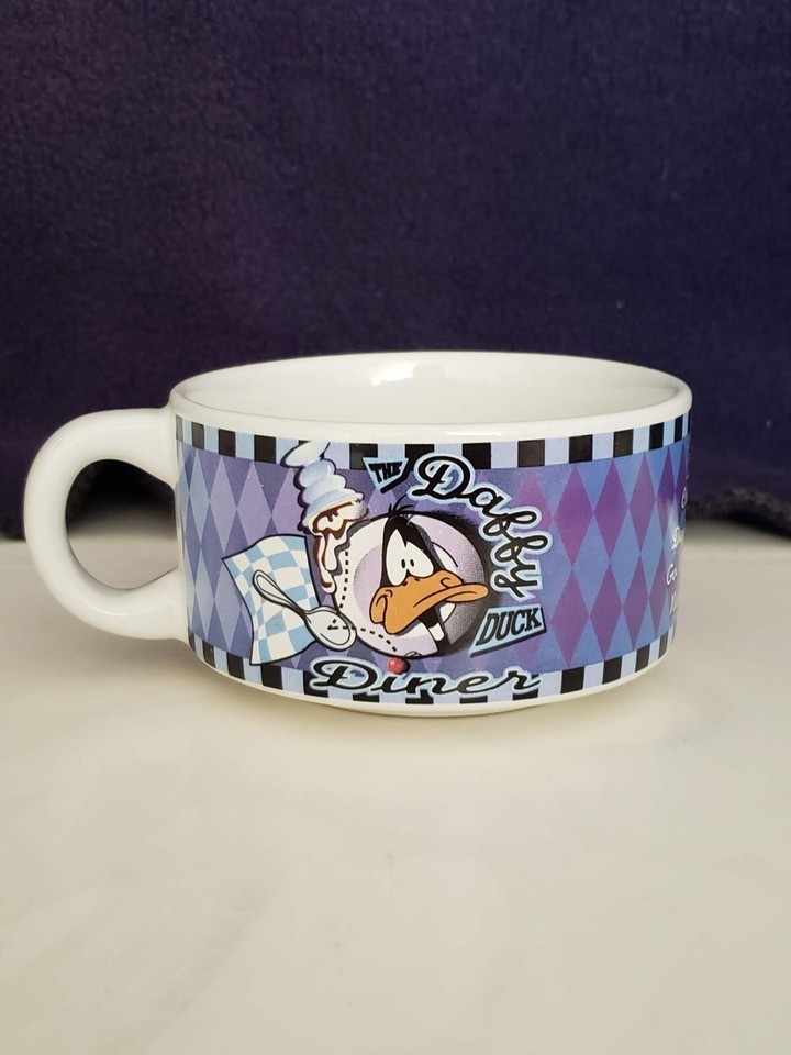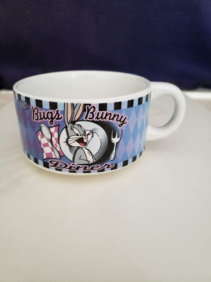 Vintage 1998 Looney Tunes Souper Bowl Mugs Bugs Bunny Daffy Duck Diner Theme