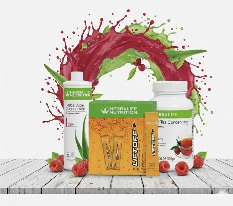 Start your day strong and stay energized with this vibrant Herbalife trio! Featuring Raspberry Herbal Tea Concentrate, Cranberry Aloe Concentrate, and 30 Liftoff Ignite-Me Orange Energy Sticks, this set delivers clean energy, digestive support, and a crisp, fruity twist ? perfect for mornings, workouts, or busy days.