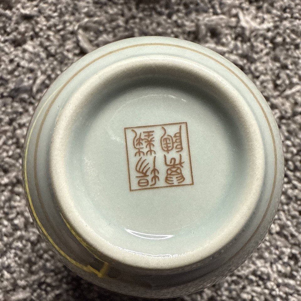 MTPI Chinese Tea Cups Blue Background Hieroglyphics Horse Greek Design