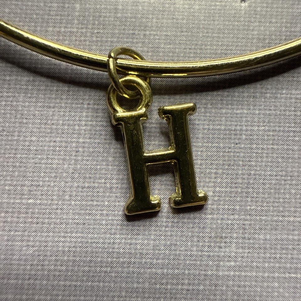Letter H Initial Dangle Charm Gold Tone Bangle Bracelet