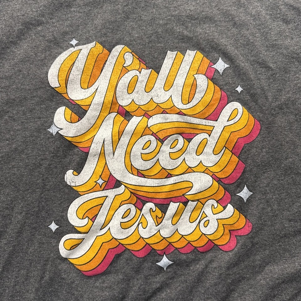 Y'all Need Jesus Retro Graphic Tee Heather Gray 3XL - XXXL