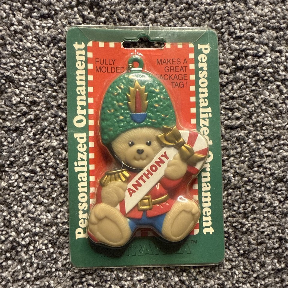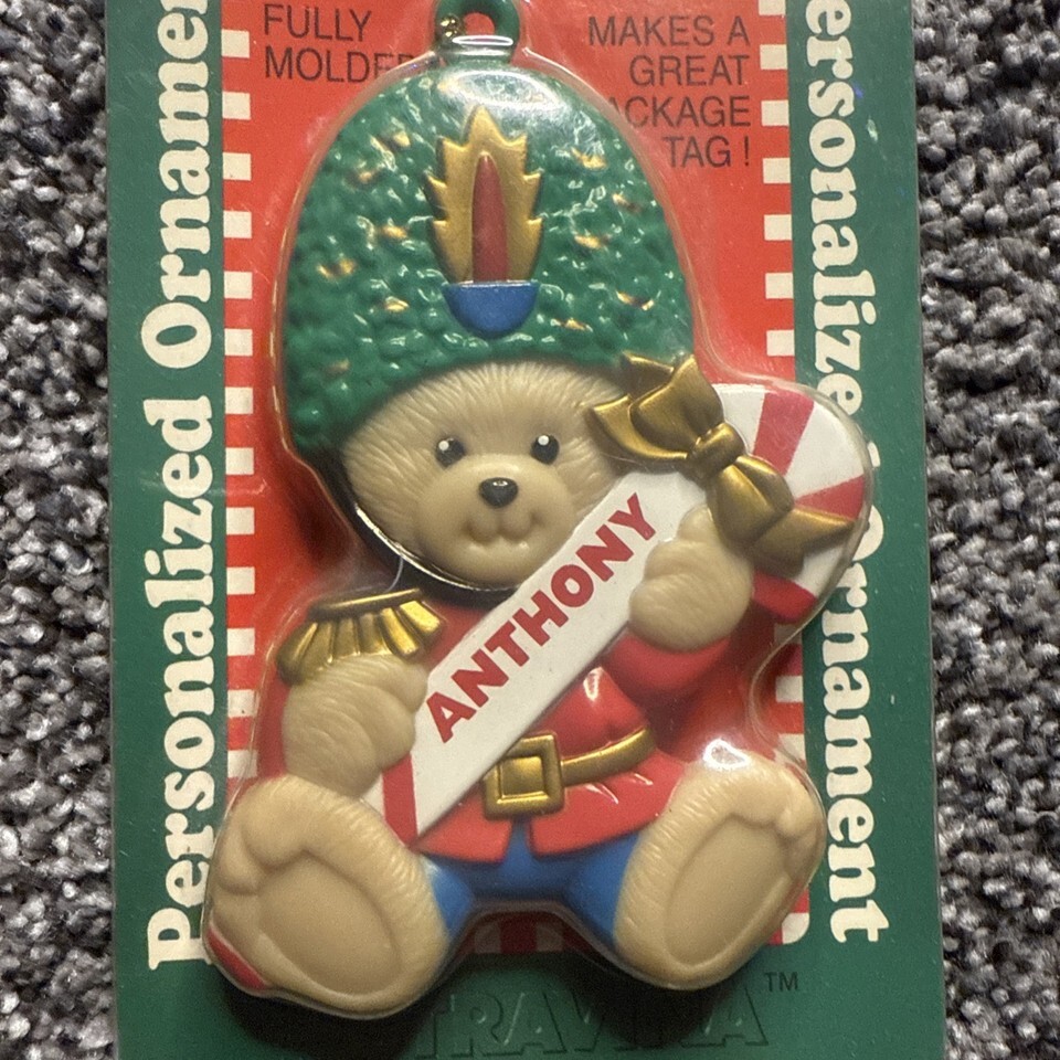 1998 Stravina Personalized Ornament “Anthony” Bear Candy Cane 4”