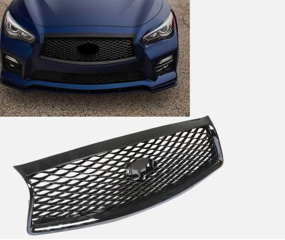 Fit For 2014-2017 Infiniti Q50 Sedan Gloss Black Front Mesh Bumper Hood Grille