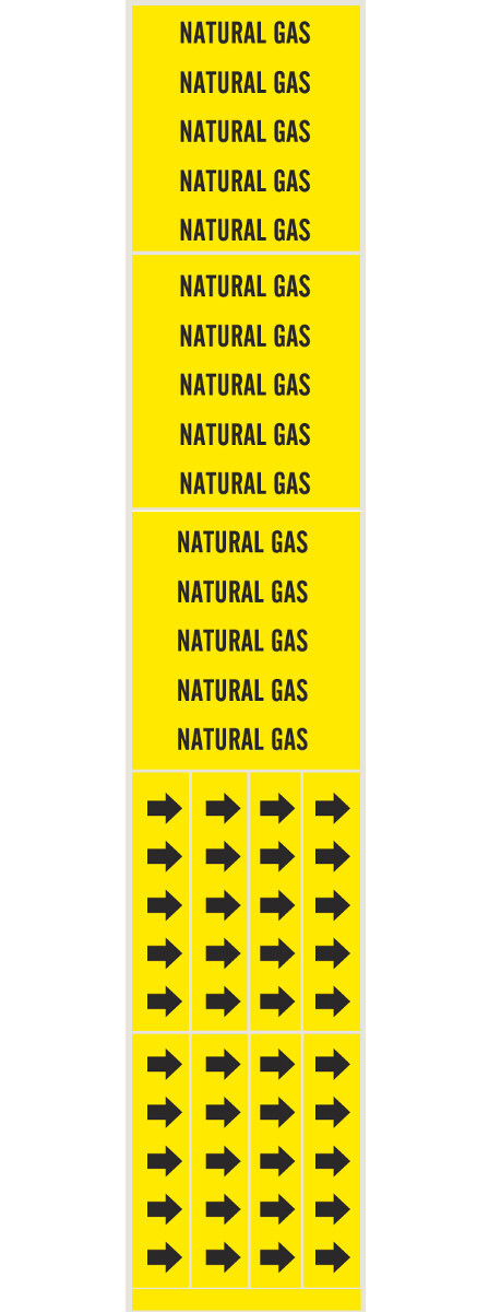 NATURAL GAS Stickers Warning Markers & Direction Arrow Bands BRADY 93340 7196-3C