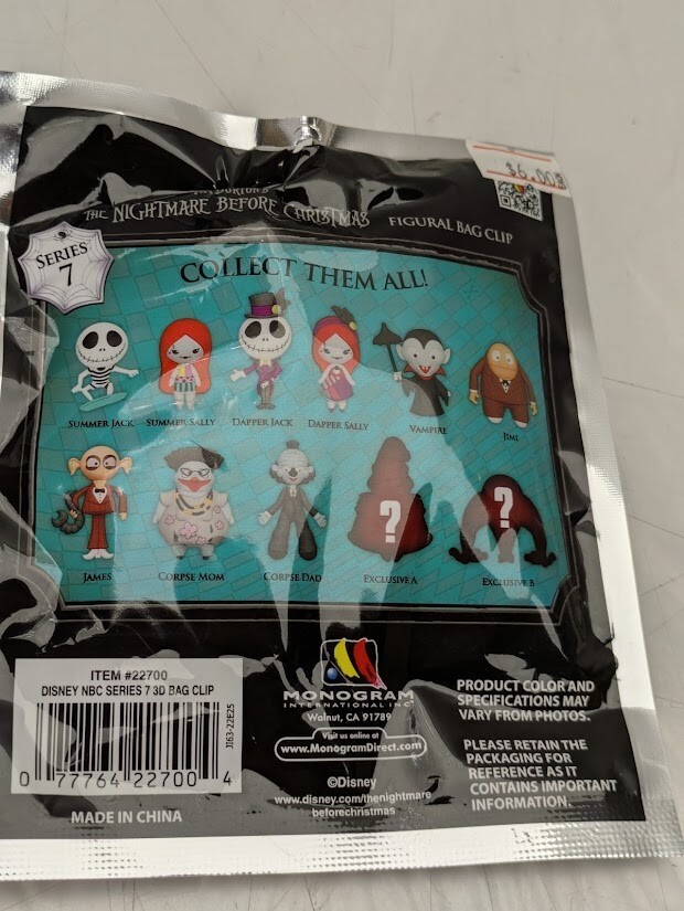 Features Disney: Tim Burton's The Nightmare Before Christmas Series 7 3D Foam Collectible Bag Clip (1 Random Blind Bag) officially licensed by Monogram