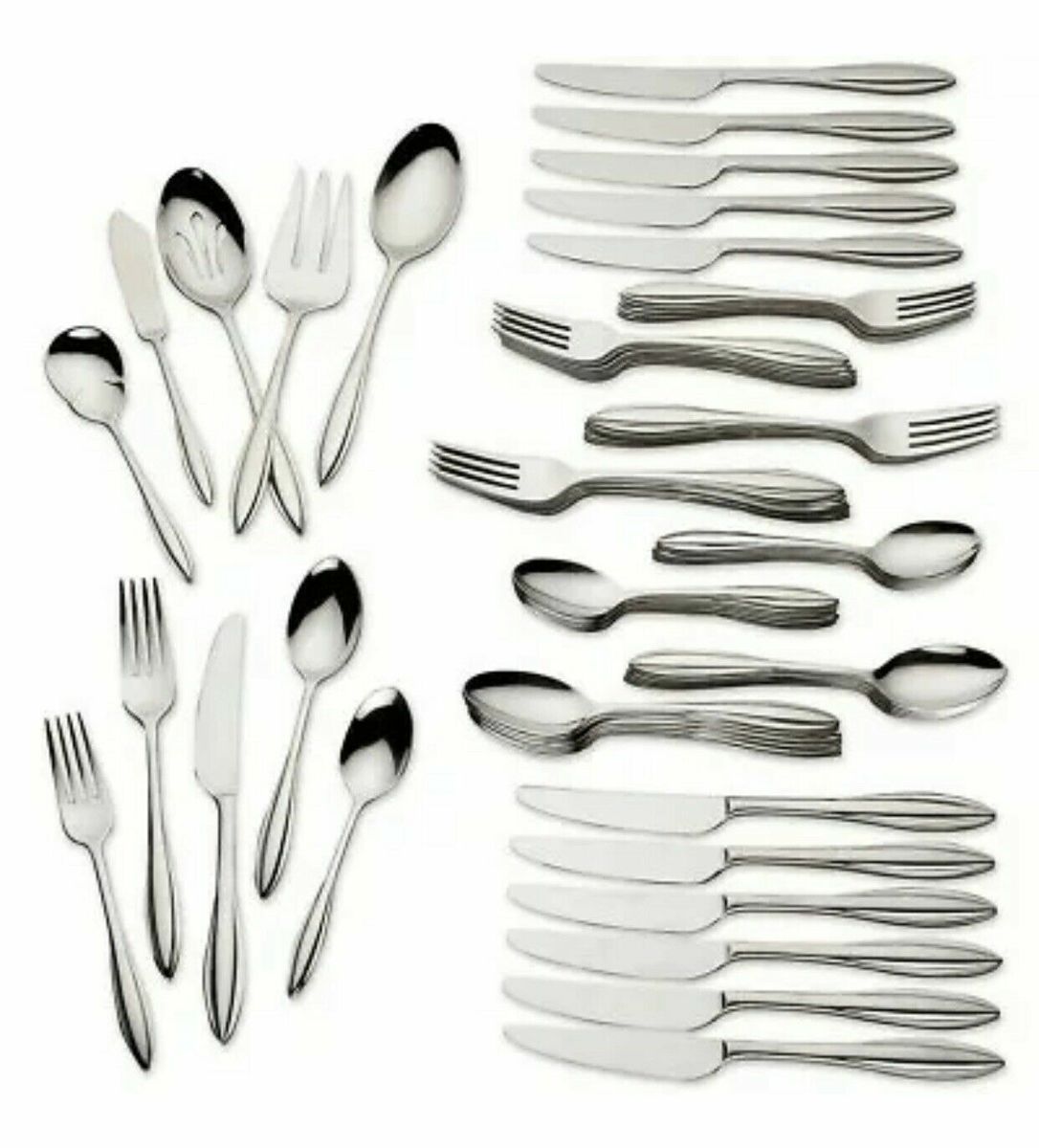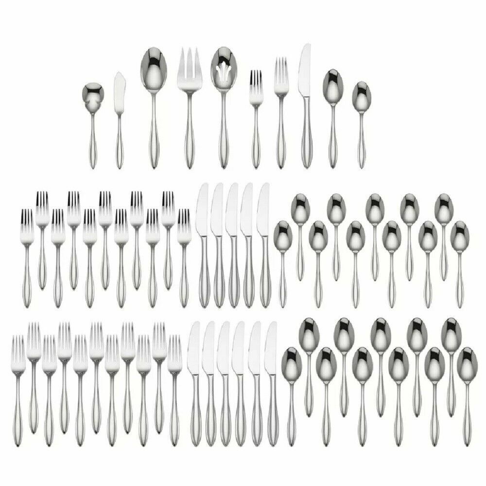 Lenox Sculpt 65 PC Flatware Set Service For 12 & 5PC Hostess Stainless 18/10 NEW