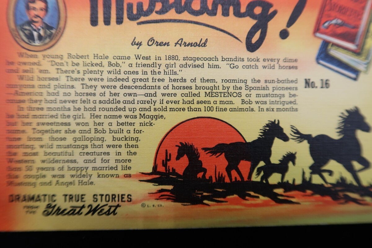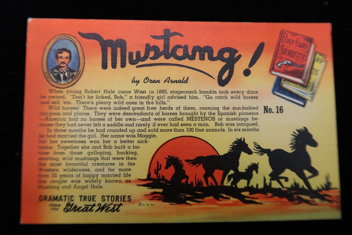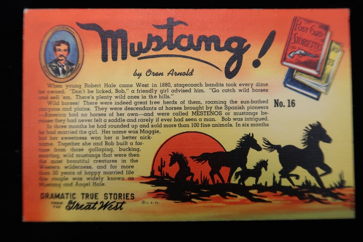 Vintage Mustang Wild Horses Linen Postcard No. 16 by Oren Arnold
