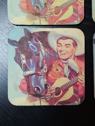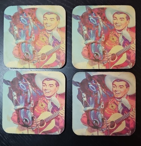 UP FOR SALE: Singing Cowboy with Horse and Guitar Set of 4 Neoprene Beverage Coasters