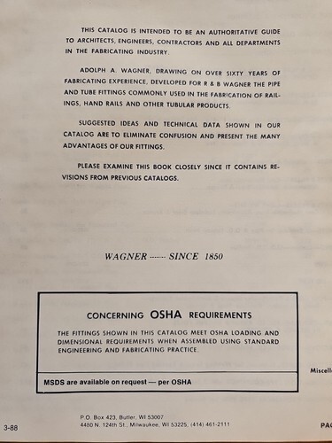 UP FOR SALE: Vintage June 1988 Wagner Pipe Tubular Fittings Catalog