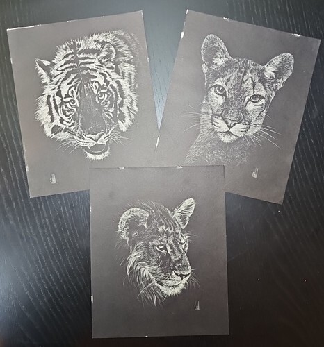Experience the beauty of nature through this set of three unframed art prints by Jane J. Hill. These contemporary black and white sketches depict majestic big cats in all their glory, adding an element of realism to any room. Measuring at approximately 10 inches in length and 8 inches in width, these prints are the perfect size for any small space.