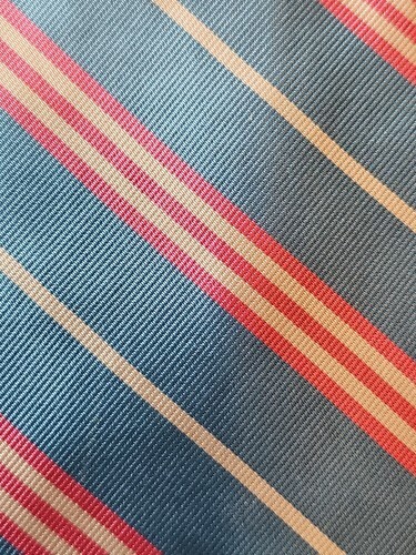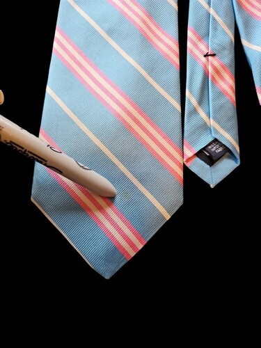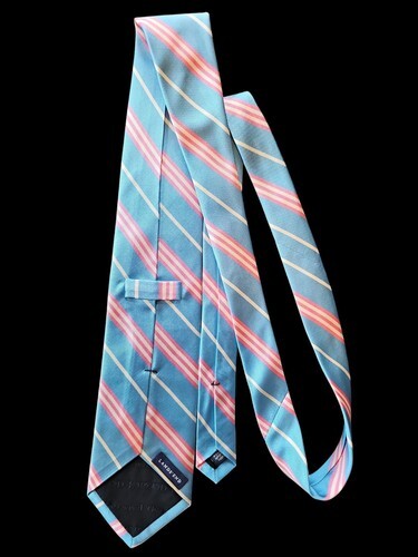 UP FOR SALE: Lands End Repp Tie Necktie 100% Silk Blue Pink White Stripe Mens Long 3.5Wx634"L