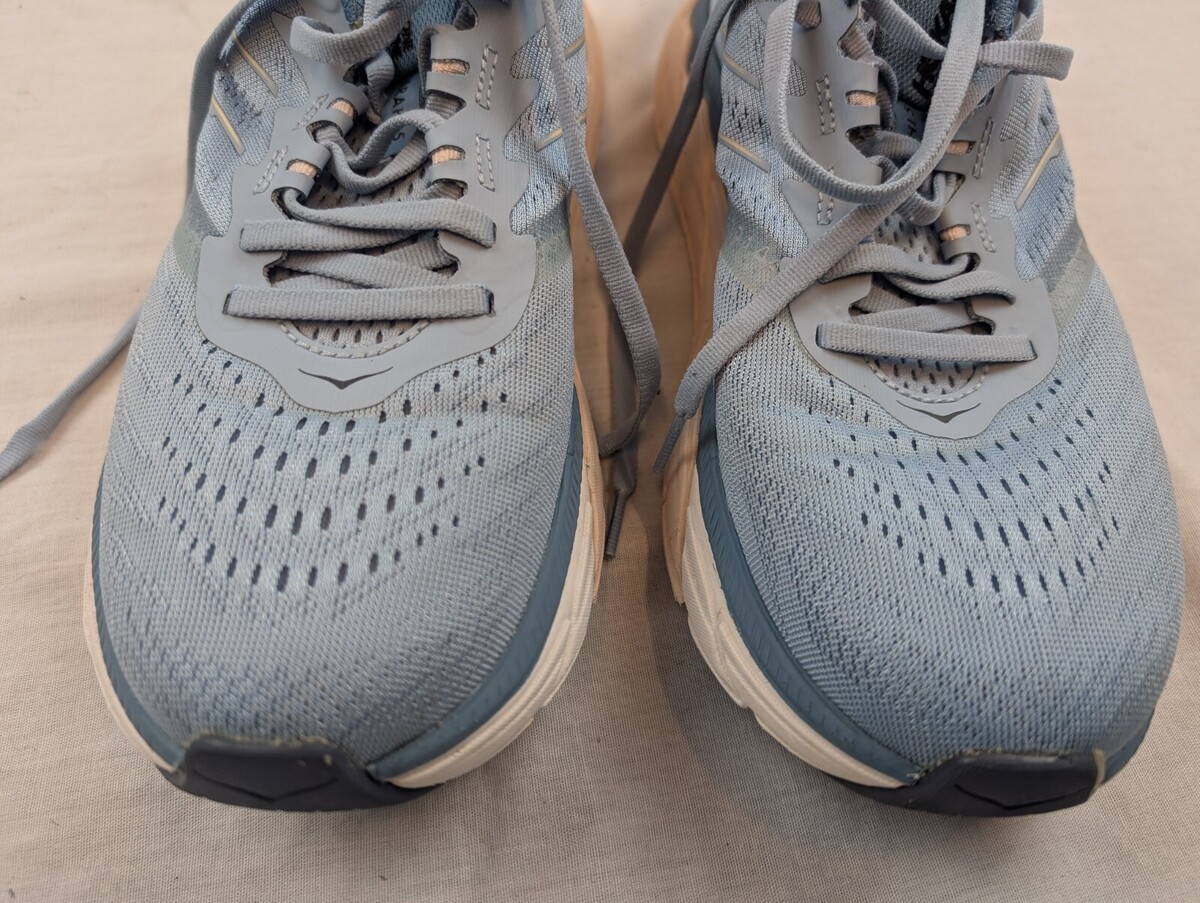Up for sale is a pair of Hoka One One Arahi 5 Womens Running Shoes Light Blue Size 9 or 9.5