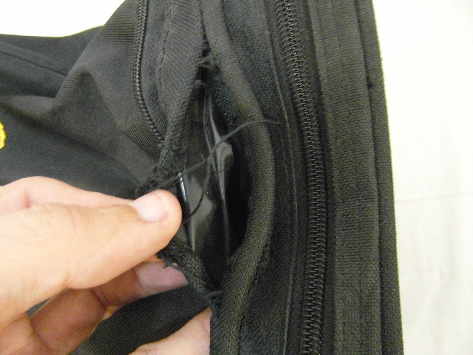 Defects: Very Small Tear On Top Seam : this does not affect the operation of the bag as it is not on top, but its very small~ See Photos
