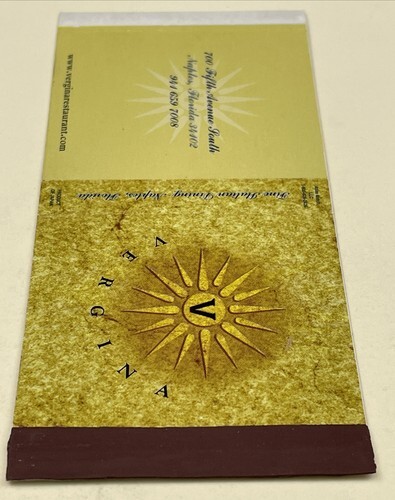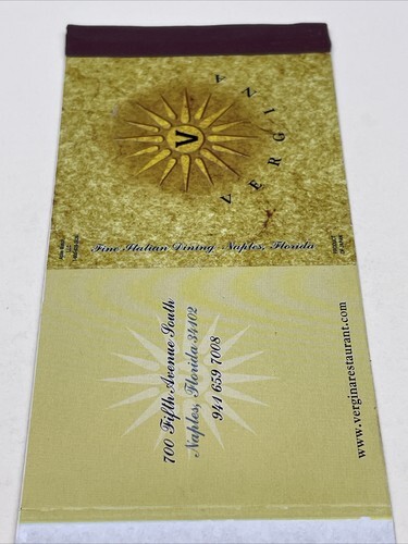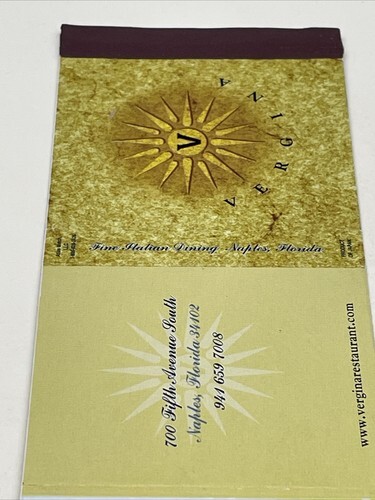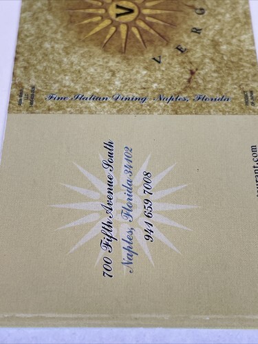 Matchbook Cover Vergina Fine Italian Dining Naples, FL Unstruck gmg