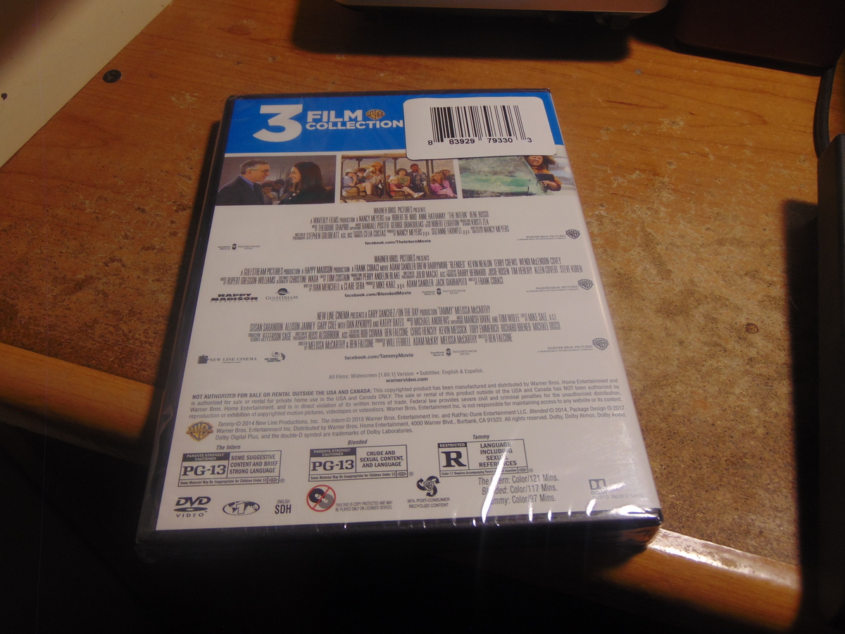 new/sealed dvd 3 film collection-comedy-warner brothers-3 great films 1-the intern-starring robert deniro anne hathaway 2-blended-starring adam sandler drew barrymore and 3-tammy-starring melissa mccarthy susan sarandon-3 great films!additional items ship free!save here!would make a great gift