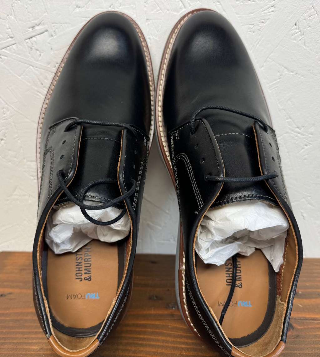 Title : Johnston Murphy Upton Plain Toe Lace Up Dress Shoe, (Size:10 Wide), Black Full Grain